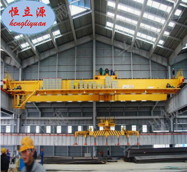通過電磁吸盤完成物料搬運工作,該起重機適用于鋼廠倉庫,用作搬運鋼板、碎料等。? ? ? ? ?